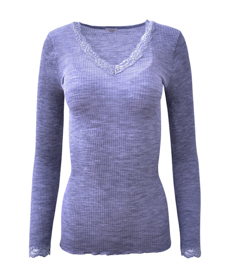 EGi Luxury Wool & Silk Sheer Long Sleeve Top with Lace Trim