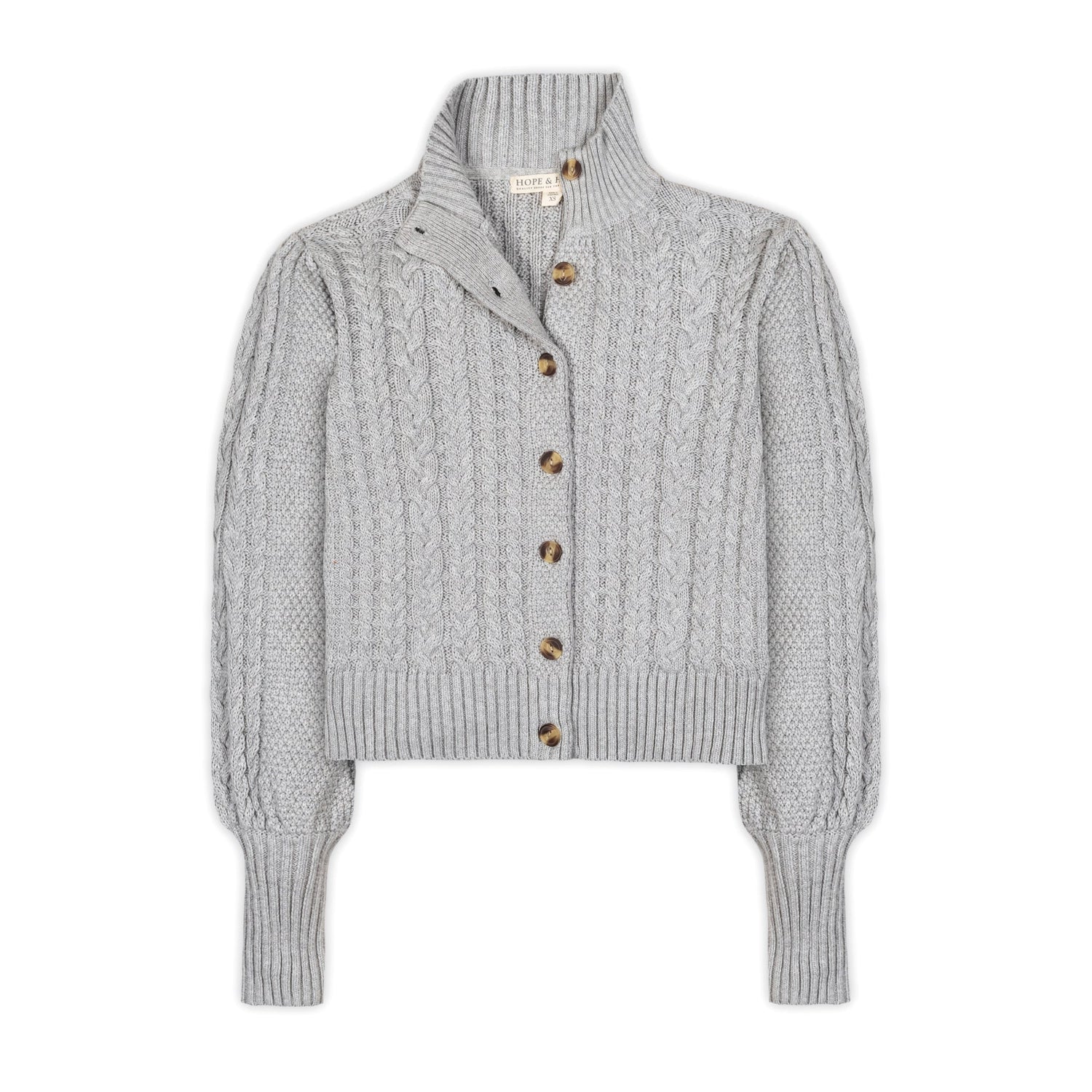 Organic Mock Neck Cable Cardigan - Large / Gray Heather is backordered and will ship as soon as it is back in stock.