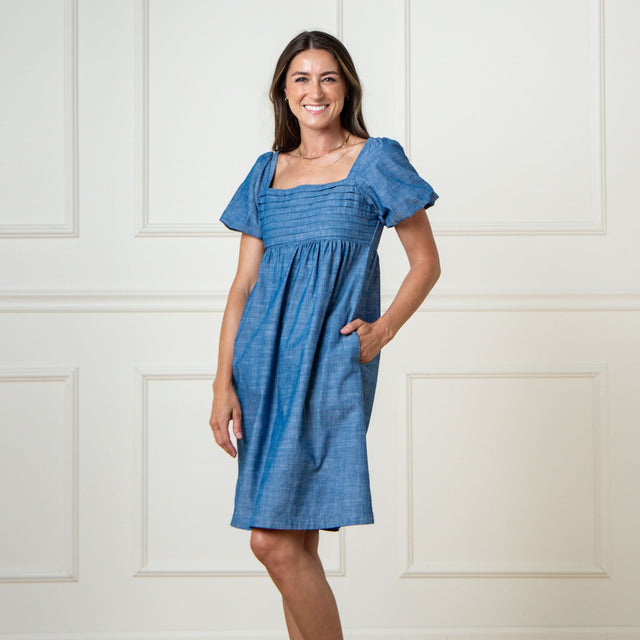 Women 100% Organic Cotton Ruched Chambray Dress - 2 / Pleated Chambray is backordered and will ship as soon as it is back in stock.